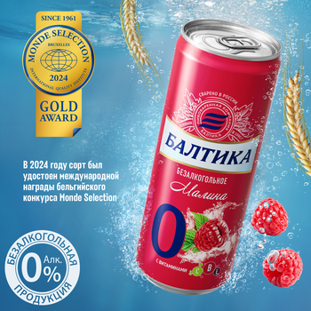 "Балтика №0 Безалкогольное Малина Банка 0,45 л – освежающий вкус малины без алкоголя!